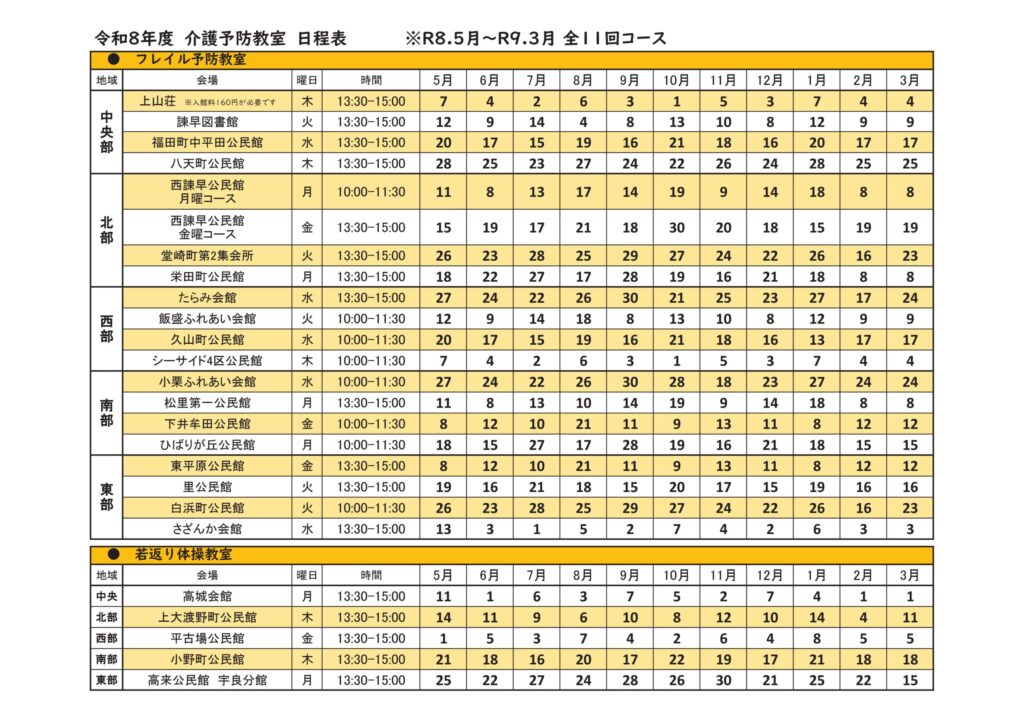令和8年度介護予防教室(フレイル予防教室・若返り体操教室)参加者募集!