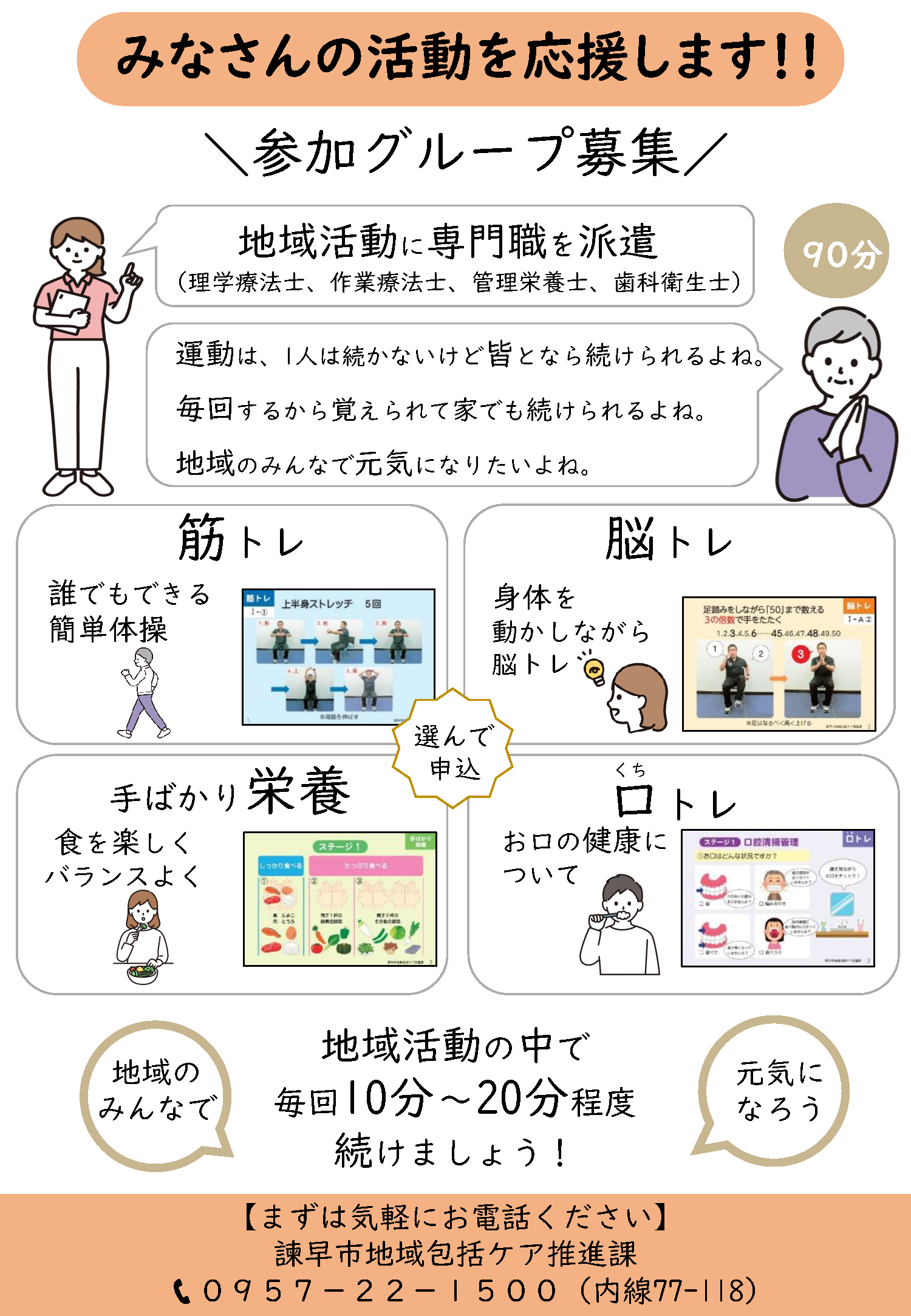 地域の活動(サロンや老人会など)に専門職を派遣します。